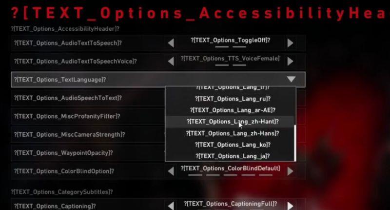 3、点击【TEXT_Options_TextLanguage】进行设置,找到以【zh_Hant】结尾的两个选项。
