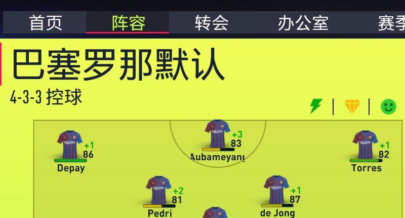1.进入生涯模式后进入阵容页面,点击目前的阵型页面。