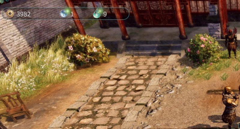6、随后将三个铜人移动至机关旁,并把铜人将全部面向机关,然后点燃三名铜人,地面上的石板就会升起。