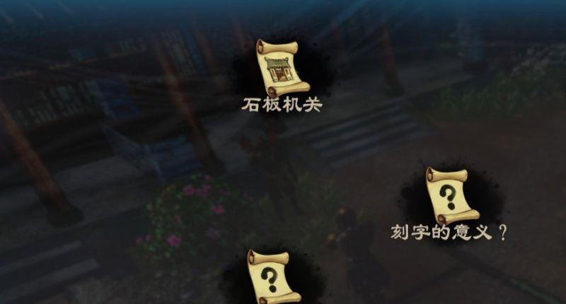 3、我们通过对院子调查,可以得到许多线索,其中【痕迹的成因】和【铜人的玄机】两条线索可以组合成为新的信息,得到的新线索可以再次与【石板机关】进行拼凑得到线索【启动机关(一)】。