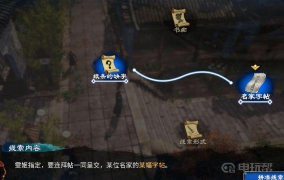 12.思考阶段将【名家字帖】与【纸条的缺字】结合获得情报【郎中字帖】。