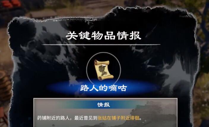 18.然后得到关键物品情报『路人的嘀咕』,得知张姑最近曾在药材铺子周围徘徊。