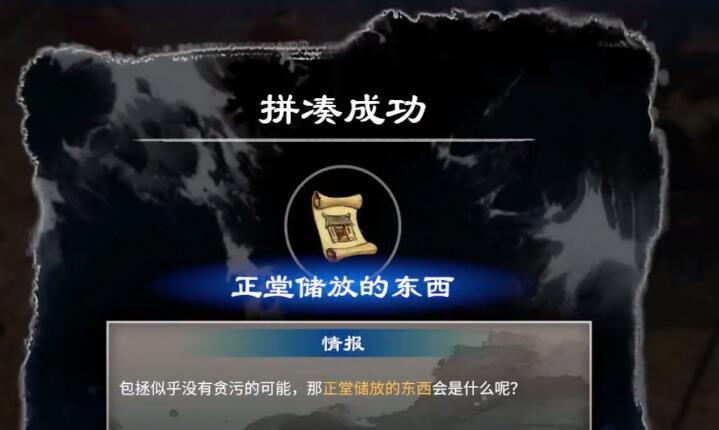 15.拼凑成功后,获得情报【正堂储放的东西】,感觉还缺乏其他线索。