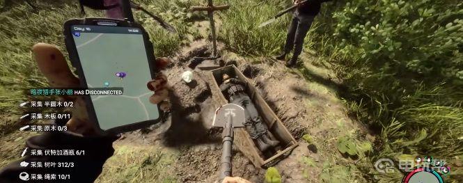 挖开之后就可以看到里面有一个木箱子,箱子里面有一个尸体,在尸体的身上就可以看到霰弹枪,这样就可以获取到霰弹枪了。