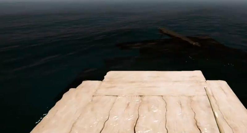 然后可以清晰的看到小岛附近有一艘沉船,沿着沉船可以看到一块漂浮的木板,洞穴的位置就在木板的下面。