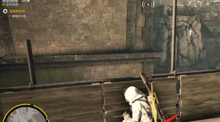 3、然后到达在桥墩上连续按R并安装炸药包,如下图所示。