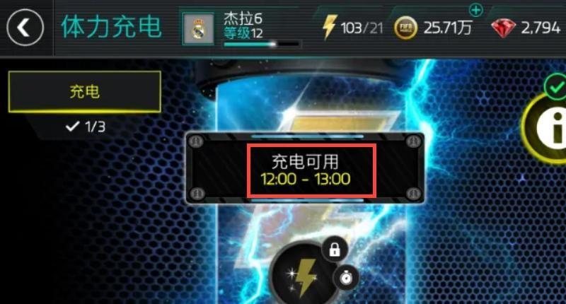 3、需要玩家注意的是游戏中不是每个时间段都可以进行体力充电的。一天之中有两个时间段可以体力充电,一个是中午12:00—13:00。