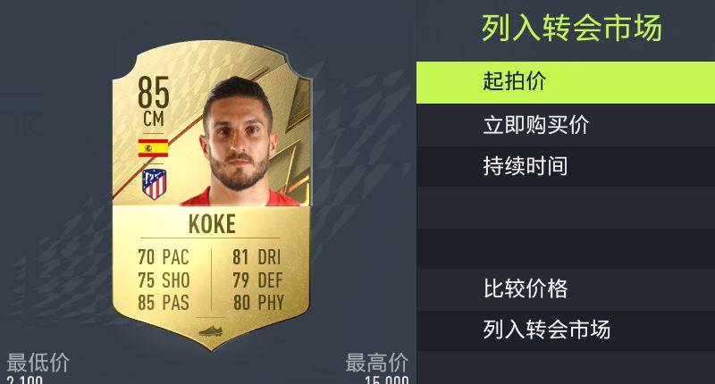 4.列入转会市场需要玩家自行设置起拍价、立即购买价、持续时间。