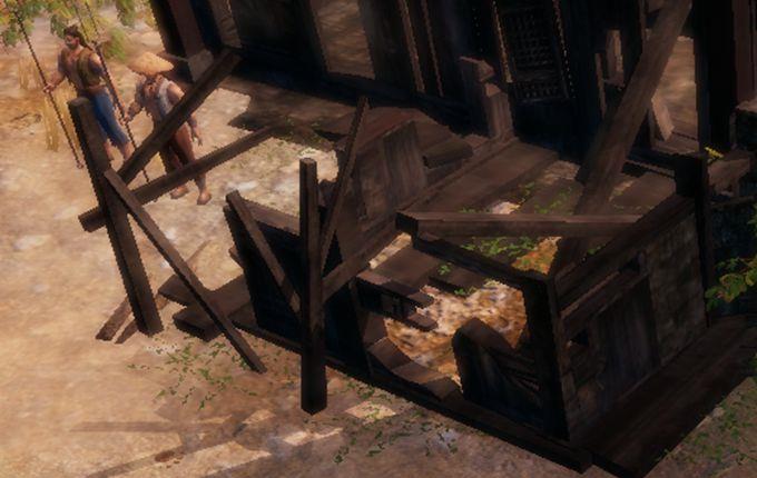 2、在碧月阁使用轻功来到神经质海寇这边,破坏左侧箱子。找到后方的箱子→一撮火药并点燃;对桌子上的美酒→碧月毒酒。经质海寇死后搜身,取得钥匙。牢笼→沾满汗液的钥匙。