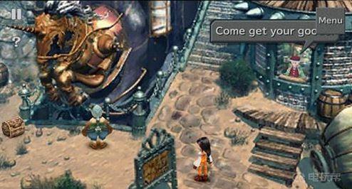 五、接着两人继续前进来到车站,左边有Moggle和一个宝箱,右边的老爷爷可以购买道具。拿完道具后沿着中间的道路登上蒸汽火车。Dagger找到位置后两人坐了下来,此时镜头再次转回来了。