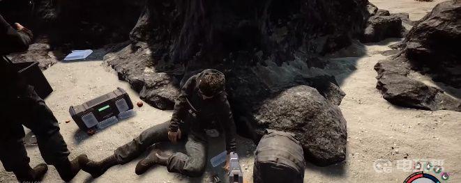 4、回到岸边可以看到尸体,在他身边可以找到手枪、子弹以及一些其他的物资。