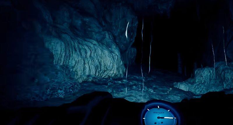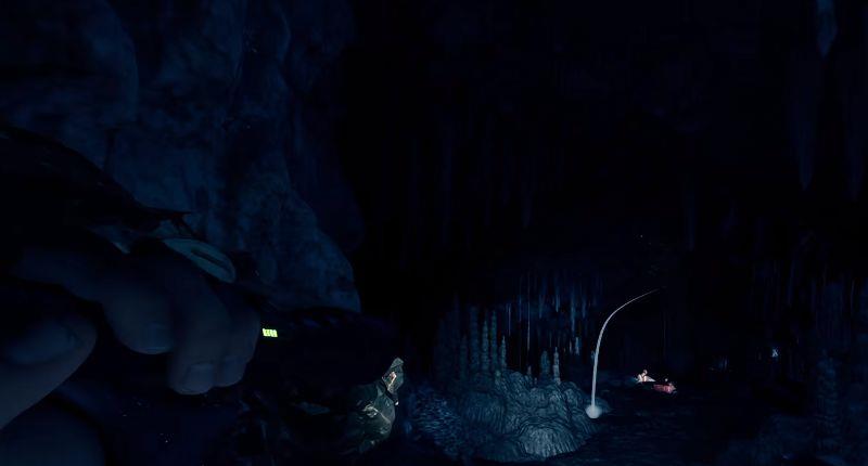 3、到达对岸后,在陆地上收集好物资,我们即可往水下潜水(需要潜水器),一直往下游。