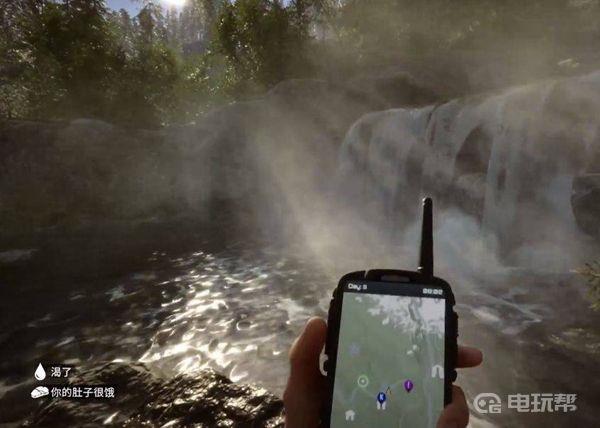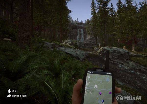 3、来到女野人可能刷新的第1个位置,如图所示的瀑布旁边,如果她不在,我们继续去下一个位置。