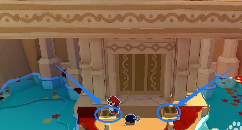 最后把炸弹兵带到水神祗神殿门口,同时踩住两个砖块即可打开大门进去
