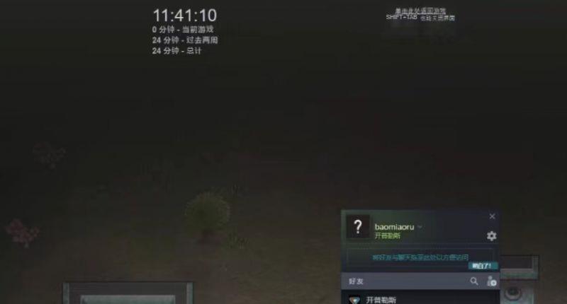 步骤四:进入游戏后按shift tab键呼出steam好友列表。