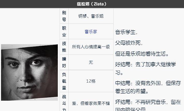 兹拉塔人物介绍:音乐学生,父母被炸死,但还是乐观地看待生活。