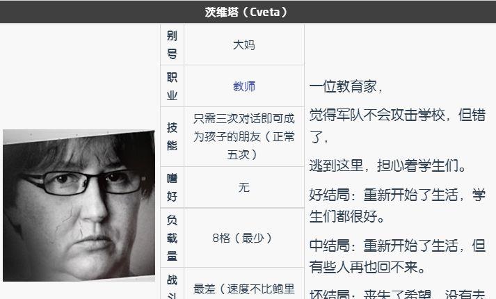 茨维塔人物介绍:一位教育家,觉得军队不会攻击学校,但错了,逃到这里,担心着学生们。