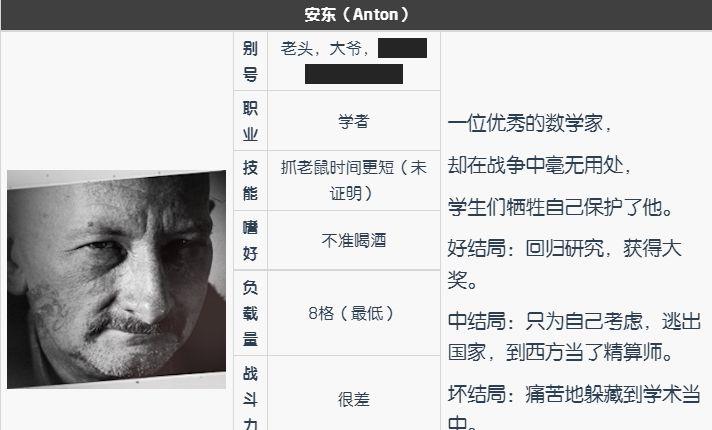 安东人物介绍:一位优秀的数学家,却在战争中毫无用处,学生们牺牲自己保护了他。
