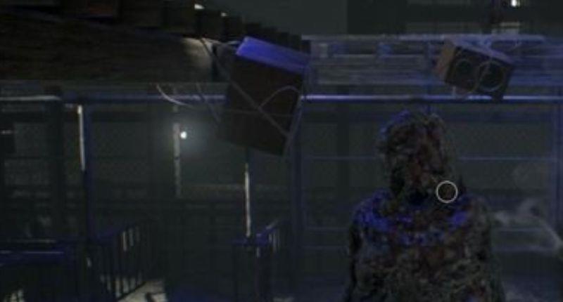 2.往前进到谷仓,在平台有很多只木箱,怕炸就用手枪打,跳到下面调查电力供给装置,发现上面缺少一块电池。。