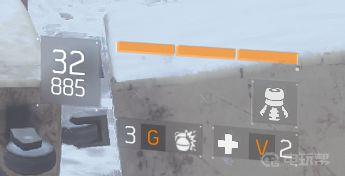 15、人物左边有图下。下面解释这个图,首先32是枪内的子弹,885备弹量,右边3格黄色就血,只能看个大概,血下面分别是Q T E 这3个技能,再下面是G V G是手雷按主G就可以换手雷。