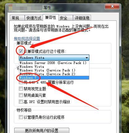 第三步:点击以兼容模式运行这个程序, 并在下拉选项中选择windows7问题就解决了