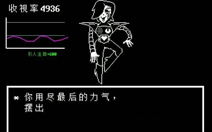 3、当血量到我们觉得够低的值,就可以选择左下角的摆动作,当我们的血量只有一格的时候,摆动作就会获得600收视率。