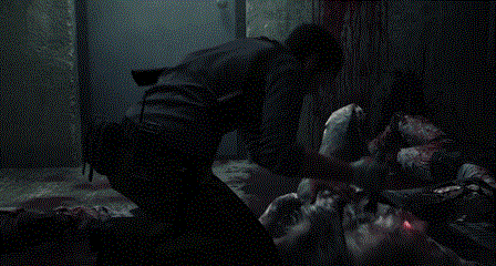 ④绕过那辆我们看到不远处有个尸体,上面有闪着蓝光的装置,是莫比乌斯的人。在尸体对面的屋子就是霰弹枪的所在地。