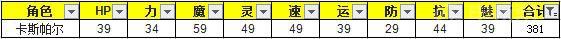 4、成长率排行榜第四名:卡斯帕尔 总成长率:381 成长率详细参数: