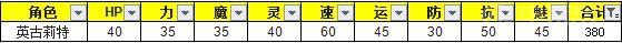 5、成长率排行榜第五名:英谷莉特 总成长率:380 成长率详细参数: