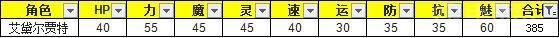 3、成长率排行榜第三名:艾黛尔贾特 总成长率:385 成长率详细参数: