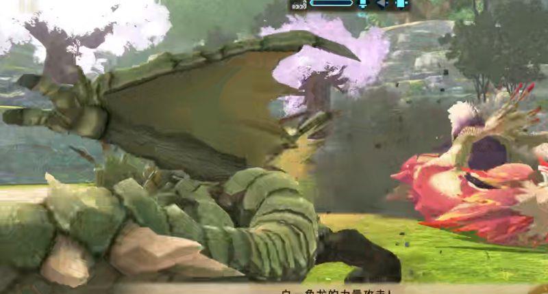 2、接着发起速度攻击触发双人动作,可以将天眼泡狐龙击倒一次。