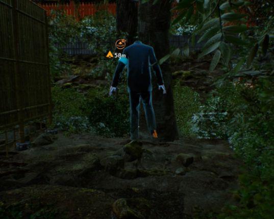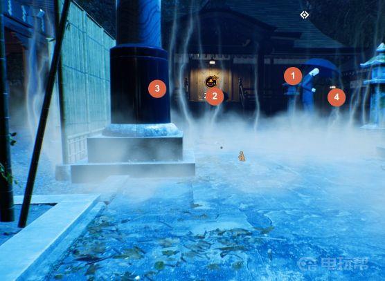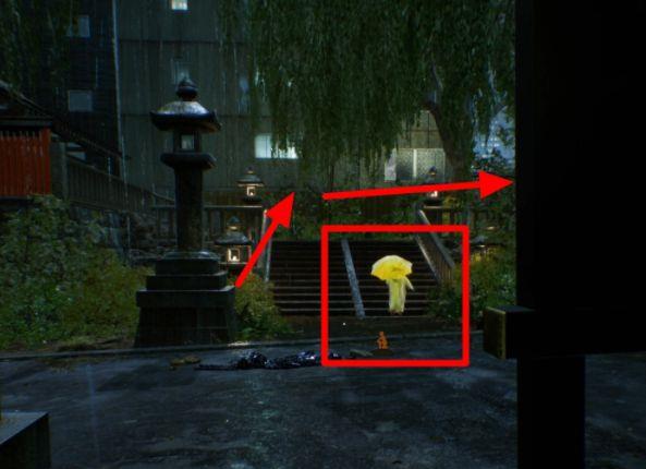 4、再从背后慢慢接近雨童并将其消灭,随后从前方的道路进入后院。