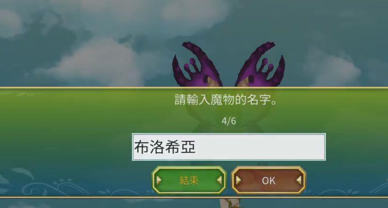 9、闪到最后,出现给魔物输入名字的界面,表示蝴蝶已经收服;