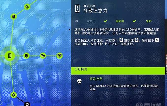 4、再升级社交工程能力,有分散注意力、偷听、帮派攻击等功能。