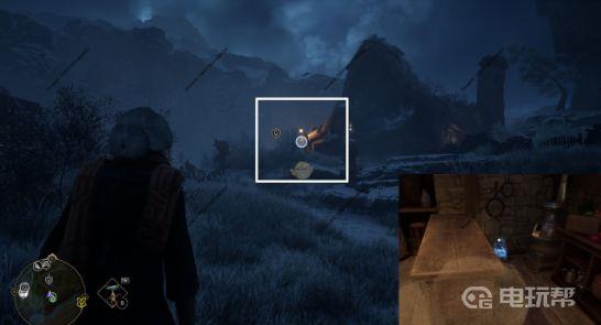 2、霍格沃茨谷地,上霍米格村飞路之焰,往前走,左侧有一个门旁放着车轮的建筑,开锁,进门凳子上。