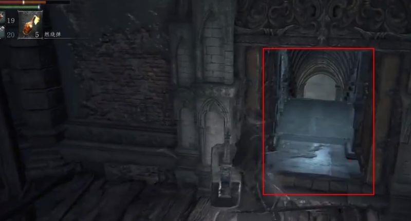 玩家在游戏中,要返回猎人的梦境,首先在大教堂区,要找到这个像拉闸一样的装备,把它拉到底。