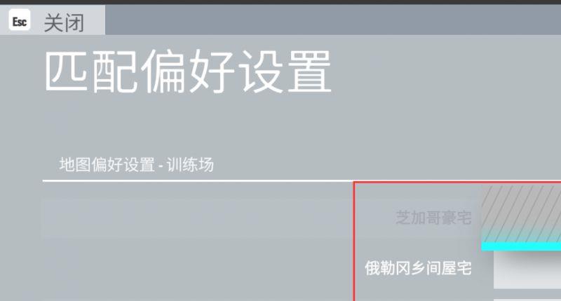 3.在匹配偏好设置界面内,将自己想要进入的训练场地图打开,其他的地图全部关闭即可,比如我想在训练场进入芝加哥豪宅,那么我只打开芝加哥豪宅地图,其他的地图都选择关。