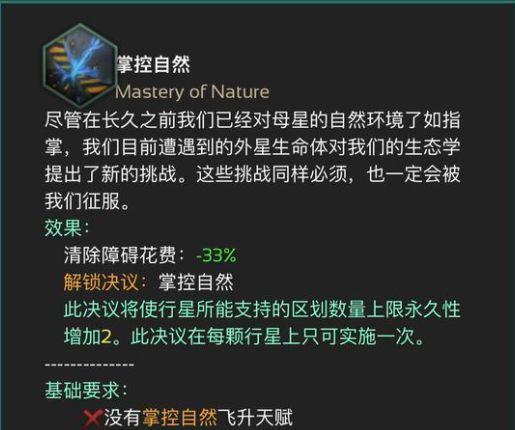 3、第一个槽位,强烈推荐掌控自然,强无敌。这个飞升省你所有清洁地块的科研支出,省你直接清地块的资源。