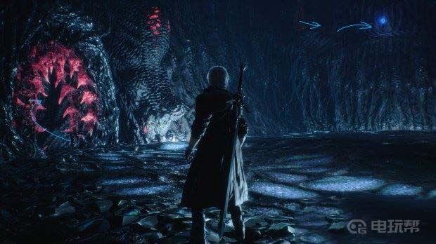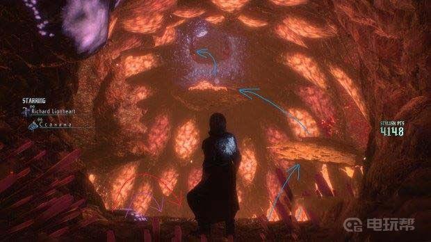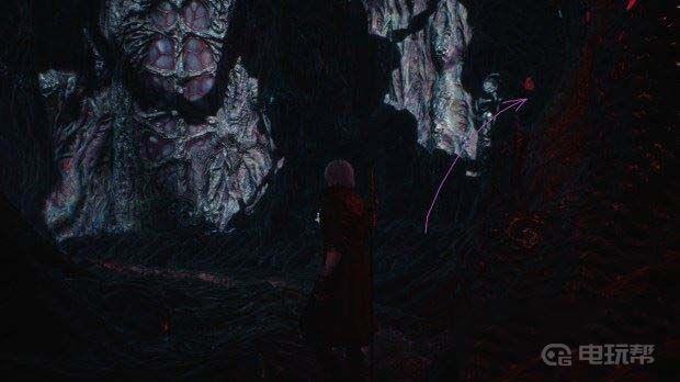 M12本关中的紫魔魂石碎片在第一次转向或攀爬时往右走(如下图紫色箭头所示位置),破坏血囊之后立刻就可以找到。