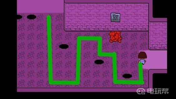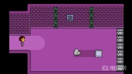 step8.去到东面的房间时,Toriel会打电话过来问你喜欢肉桂还是奶油糖,其实选择哪一个都可以,因为Toriel之后会制作出一个肉桂奶油糖蛋糕,两者都包含在里面。随后推动房间西面的石头去到其轨道右侧的装置上,那么房间中部的尖刺陷阱就会被移除。