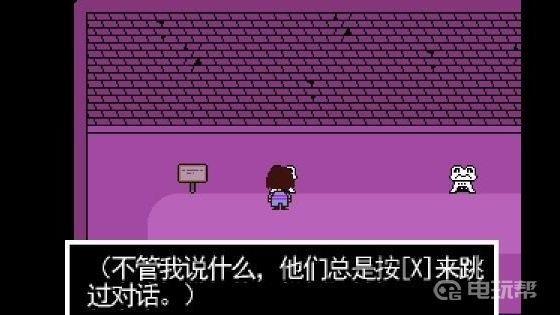 step6.与Toriel别离后在东面的走廊内会发现一只青蛙和一个存档点。青蛙并不想与你战斗,他还传授技巧给你,如果进行某些行动或持续战斗至即将击败敌人,敌人就不想与你战斗,那么你可以对敌人实施宽恕,让他们离开。在这个走廊内游走会遇到青蛙froggit,以赞美就可以将其击败,北面的房间内放着一颗糖。