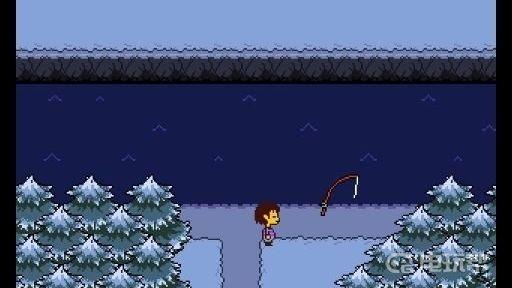 step5.来到冰湖前,sans告诉你他哥哥会使用蓝色的特殊攻击,这种攻击只要你不要移动心形,就不会受到伤害。去到冰湖北面的悬崖前看见一个雪人,他想要到四处旅行,你可以选择从其身上摘下一部分,然后带着雪人的部分去旅行。