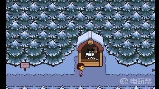step3.来到一个狗屋前,这里的路牌警告你“不要乱动”,这是与狗狗doggo对战的窍门。