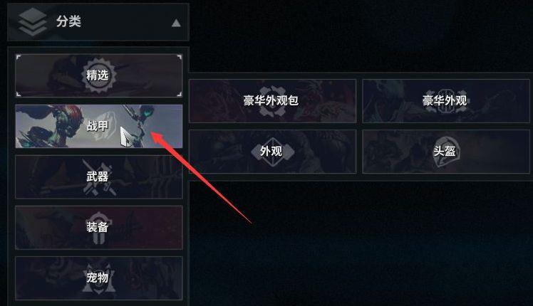 4.再在分类里点击战甲那一栏,点击战甲。