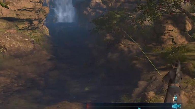 2,之后只要到岸边找水面有波动的处就可以触发钓鱼了。