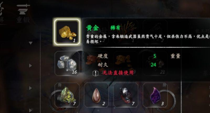 5、寒铁和镔铁野外都是可以找到几块的,或者可以分解游戏里武器店买到的紫色武器,也可以分解出来。