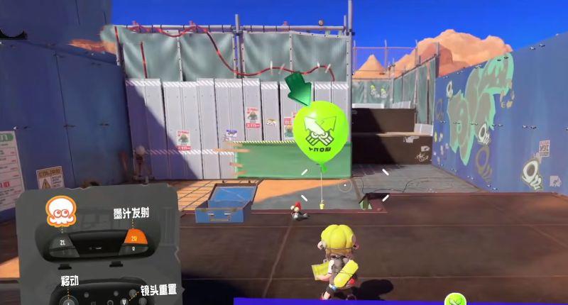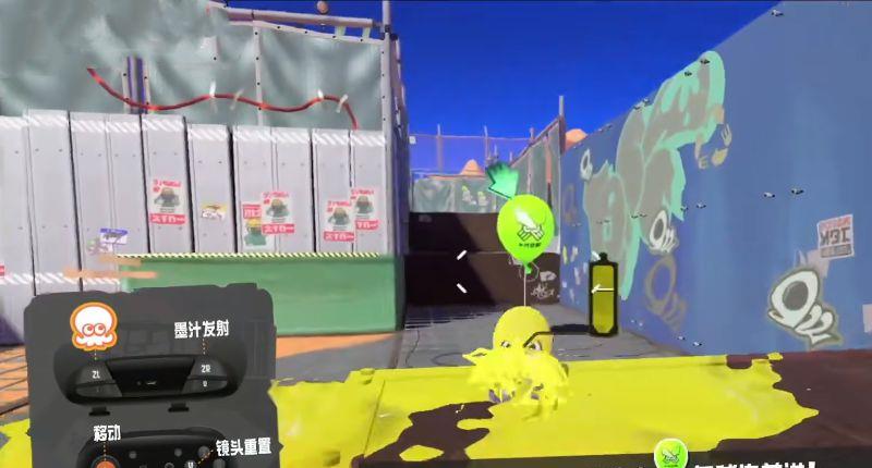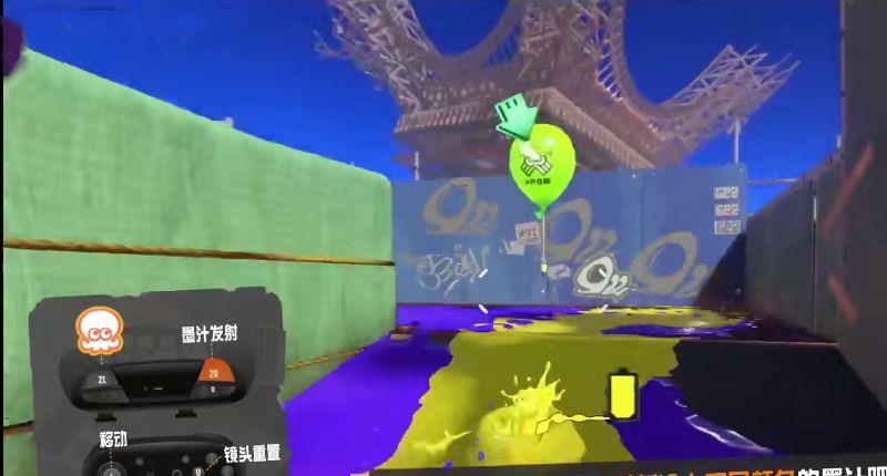 4、过来后倾斜手柄,按ZR键发射墨汁攻击气球
