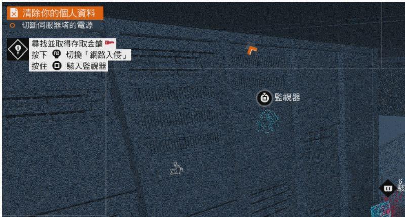 六、现在只要向下逃离伺服器塔即可,途中会有个小教程教你完成通过入侵设备来吸引敌方的注意,或是将人击晕。