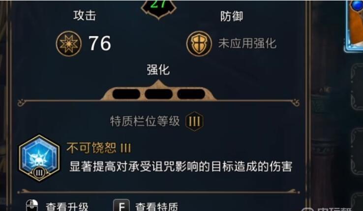 2、在装备强化后偶还可以解锁特质栏的效果,能够提升魔咒的效果。