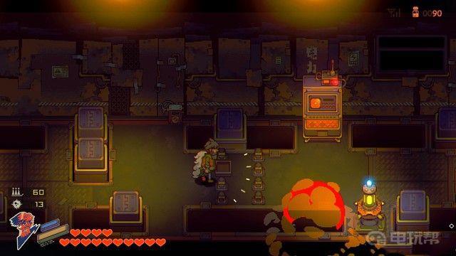 2、如下图箭头所指,列车停下后,去火车头偏后方的位置平底锅连击,3、这里是BOSS攻击死角,炸弹炸不到我们。4、BOSS眩晕后,驾驶员暴露,上去揍就行了。